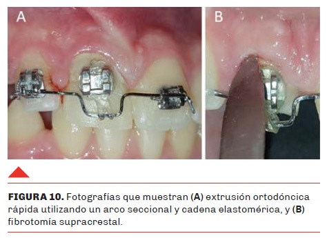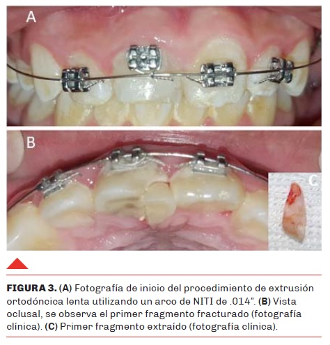 Dentro de las técnicas de extrusión para exponer los márgenes de la fractura, la extrusión ortodóncica es más conservadora y fisiológica que el reposicionamiento quirúrgico, que puede provocar anquilosis y/o reabsorción radicular externa. La desventaja de la extrusión ortodóncica es que requiere varios controles y cooperación del paciente y su entorno familiar, a diferencia de la extrusión quirúrgica que es un procedimiento que necesita menor tiempo clínico (Enshaei y Ghasemi, 2018; Dede et al., 2017; Dietrich et al., 2019).
