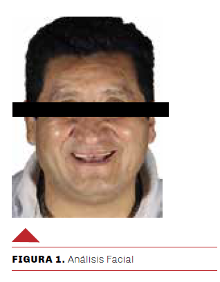 En el análisis dentolabial no presenta la exposición de las piezas dentarias superiores junto a los labios finos en posición de reposo. Al realizar una posición máxima de sonrisa se observa, junto al labio inferior, la curva incisiva inversa o plana, sin contacto con la línea de sonrisa baja, con la anchura de la sonrisa hasta 2do premolar y el corredor bucal ancho. El plano oclusal aparece inclinado a la derecha con referente a la línea comisural (Figura 1).